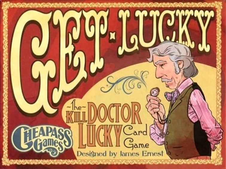 Welcome to the J. Robert Lucky mansion...again. Once more, you and a collection of similarly evil-minded people have gathered for a seemingly innocuous dinner party. It will be an evening of stimulating conversation, quiet music, and desperate murder attempts. But this time, it's a card game. Get Lucky is the card game adaptation of the classic board game Kill Doctor Lucky. Players control multiple house guests, each with some very good reason to take the old man out — but he's not called "Doctor Lucky" for nothing. He's more resilient than a bad habit and twice as irritating. Take heart; his famous luck won't last forever! Gather around the card table and see who can Get Lucky!