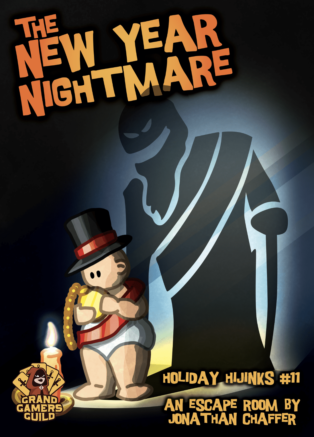 It's the cusp of a new year and you find yourself in Prof Timely‘s manor. You never thought you'd return after your February adventure, but it’s funny how time has a way of repeating itself. With the clock ticking down to midnight and the professor's experiments going haywire, you prepare yourself for the calamity to come. Only your New Year resolve will ensure a bright future, instead of dwelling in the past… The New Year Nightmare, title #11 in the Holiday Hijinks line, is an escape room style game in just 18 cards! As a group, you will solve a series of puzzles to unravel a mystery. Puzzles may test your perception, wordplay, and lateral thinking. English language fluency is required. When you have solved a puzzle on the cards, you will enter the answer into the companion website (compatible with all smart phones and computers) and it will check whether you are correct. If you are, the website will tell you which card or cards to take next. The website also contains a graduated hint system, so if you get stuck you can get just a small hint about the current puzzle to get moving again without giving too much away. This system is non-destructible: some groups may choose to write on cards, but this is not required. A group cannot re-play the game, but can pass it on to another group for their use. This entry in the series takes about an hour to solve, and is rated 3 out of 3 in difficulty.